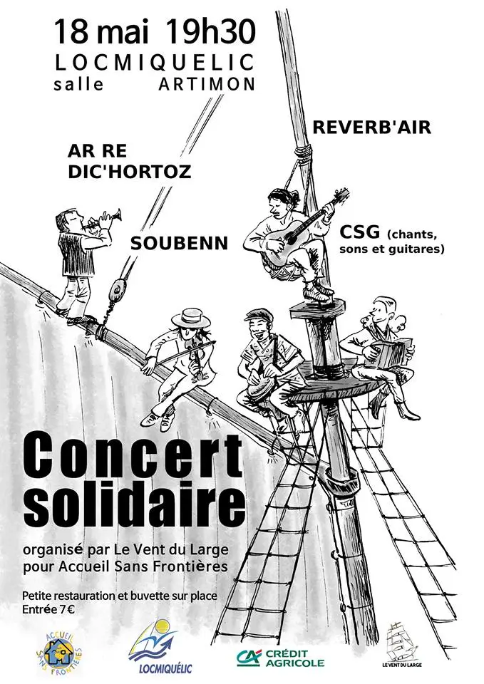 • Poésie à 4 mains : Un nouveau concert solidaire est organisé en mai par l’association « Le Vent du Large » à l’Artimon au profit d’Accueil Sans Frontière et une équipe travaille pour accompagner musicalement des textes et poèmes écrits par Jérôme et Joël.