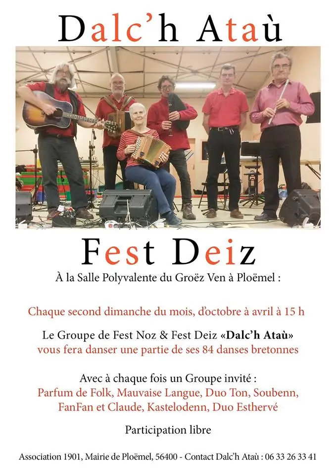Nous sommes maintenant référencés sur Tamm-Kreiz, avons participé à nouveau au Fest Deiz de Ploëmel et co-organisé un Fest Noz avec les groupes Dalc’h Ataù et Parfum de Folk ! 😉